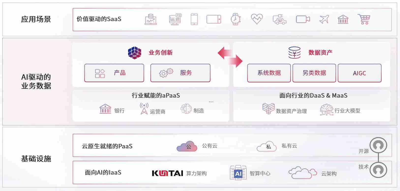 数字时代,,,,围绕企业数字化转型的关键要素,,bob波币钱包数码开创性的提出数云融合战略和技术体系框架,,,,着力在云原生、、、、数字原生、、、AI原生和信创产业上架构产品和服务能力,,,,为处在不同数字化转型阶段的快消零售、、、汽车、、金融、、、医疗、、、政企、、、、教育、、、运营商等行业客户提供泛在的敏捷IT能力和融合的数据驱动能力,,,,构建跨界融合创新的数字业务场景和新业务模式,,助力企业级客户建立面向未来的核心能力和竞争优势,,全面推动社会的数字化、、、、智能化转型升级。。。